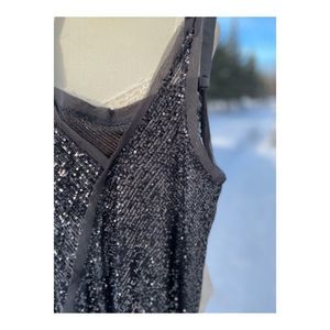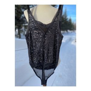 Free People Metallic Shimmer & Shine Bodysuit Night Sz XS NWT Black Silver