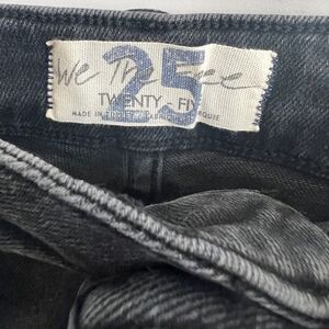 Raw hems, cropped length, 5 pocket style Colour: washed black Approx flat measurements: Waist 11.5”, rise 9.5”, inseam 27” Fabric: 93% cotton, 5% polyester, 2% elastane