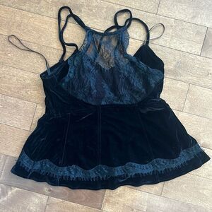 Soft and romantic, this Free People peplum top features plush black velvet and a flattering silhouette. Perfect for layering or wearing solo, it pairs beautifully with jeans, trousers, or skirts.
