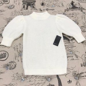 Half puff sleeves and a mock neck detail this woven knit top.