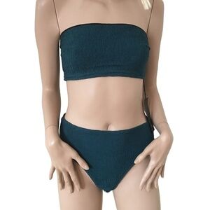 Free Society Two Piece Scrunch Swimsuit Cheeky Bikini Bottom & Bandeau Bra Top