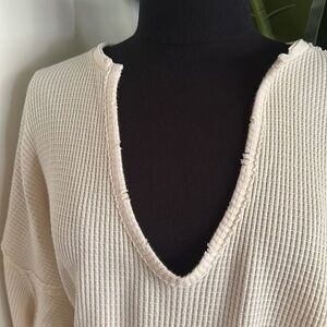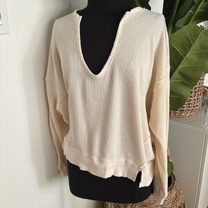 WE THE FREE PEOPLE Long Sleeve Buttercup Thermal Top Waffle Knit in Ivory Sz S