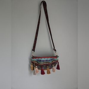 Add a splash of color to your look with this vibrant little bag. Featuring playful tassels and a unique design, it's perfect for any occasion.