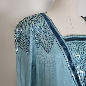 *Free With Purchase* 80’s D'ore shift dress midi turquoise beaded sequins