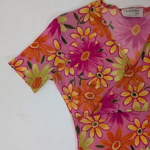 Free With Purchase - Floral Mesh T-Shirt Short Sleeve Sheer V-Neck Fitted Tight