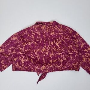 *Free With Purchase* Floral cropped blouse 3/4 sleeve peasant top crop front tie