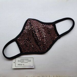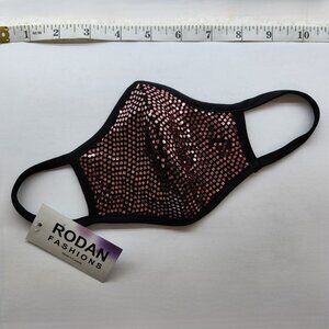 Free With order of 35 dollars or more, or purchase alone. Face mask in lovely pinkish sequins on black mask. For young faces. NWT. EUC. Rodan Fashion. No filter slot. Polyester and elastine. Made in Canada. 10.5 inches aprox wide. by 5.5 inches aprox. Tall. FWP. Just add to your bundle with your purchase, and make an offer excluding cost of this item.