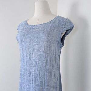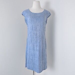 *Free With Purchase* Linen Midi Mini Dress Blue Pastel Short Sleeve Lightweight