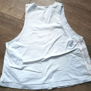 Free with purchase adidas tank top size S no rips does have a light stain on the back I tried to show it in last picture
