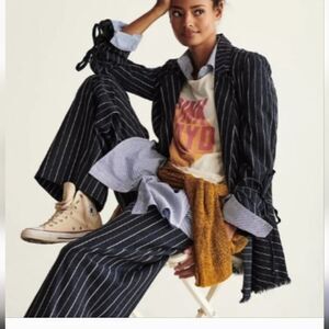 Free people Indigo navy Stella longline striped double breasted blazer SMALL