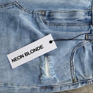 Free people Neon Blonde Denim Jean Mini Skirt Distressed High Waist Light wash