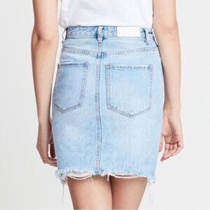 Free People Neon Blonde Strutt Denim Mini Skirt Light Wash Distressed