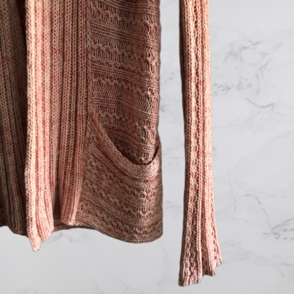 Beautiful Cardigan from Free People, this over dyed deep pink and cream yarn gives almost a pinky coral finish. Ribbed and cable knit. Open front waterfall style cardigan with chic crop cut. A cozy and boho chic layering sweater. Two front pockets. Excellent condition. 100% cotton.