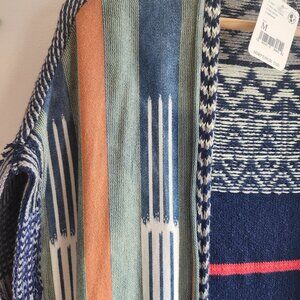 New w tags. Never worn. Beautiful long vest. Blue, orange, purples. Mixed textures. Boho.