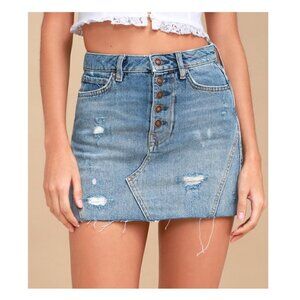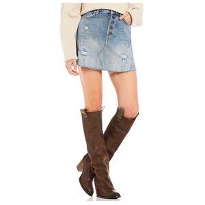 Free People We the Free Denim A-Line Light Wash Cutoff Mini Skirt
