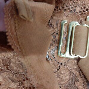 Stunning free people bodysuit with a rare design. It has detachable straps with gold hardware that are adjustable. You can wear the lace sleeves slightly off shoulder for a different look. It has a thong bottom and is an almost camel rust colour that goes with everything. Size is xs, has some stretch but fits true to size. Excellent condition with very little wear.