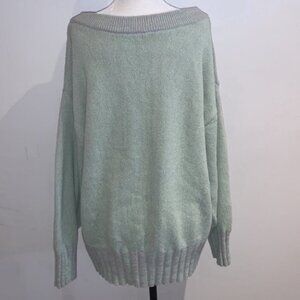 Revolve Free people lime green gray Street Fair off the shoulder sweater Tunic size XS