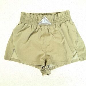 Free People Next Round Shorts In Muted Sage High waist Smocked elastic waist Embroidered triangle logo patch Side pockets Ripstop fabric Excellent condition