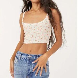 Free people tan/orange one of the girls cami floral print crop top size Large
