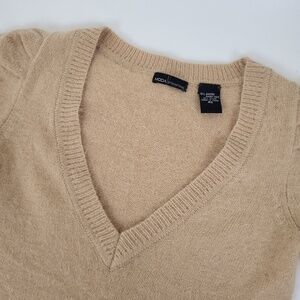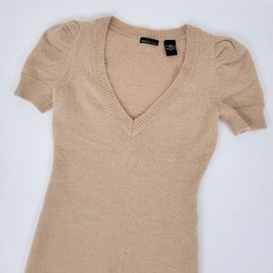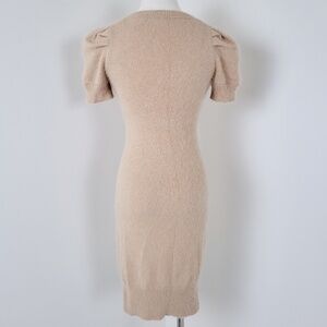*Free with Purchase* Angora Puff Sleeve Mini Dress Tan V-neck Soft