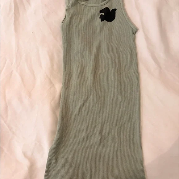 Stylish sleeveless ribbed tank top featuring a black logo detail. Perfect for casual days.