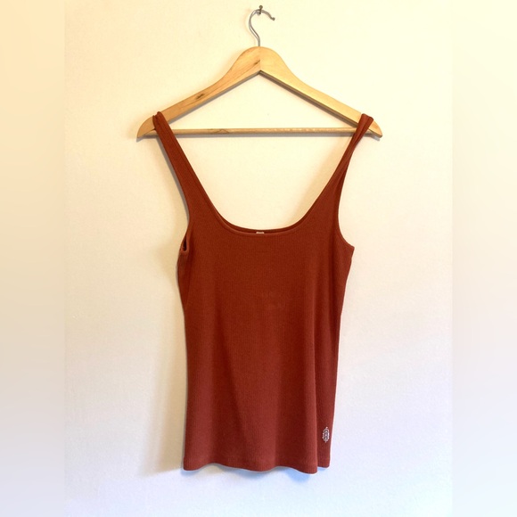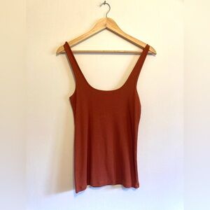 Forever timeless tank top in burnt orange featured in a sleeveless silhouette and soft ribbed fabrication with a crew neckline.
