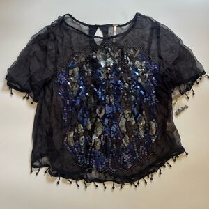 Rare Free People Talk That Talk Beaded Sheer Chiffon Top – Size Small