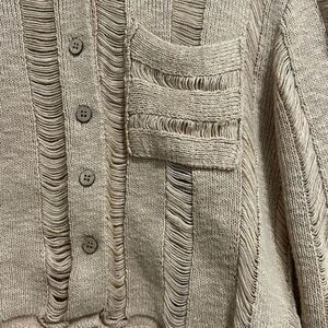 Free People Spring Summer Unique Linen Cotton Distressed Cardigan Size S