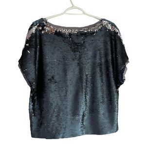 Free People We The Free Glitz It Reversible Sequin Top Blue Silver Blouse Sz XS
