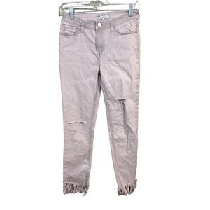 Stylish white jeans with fringe hem. Perfect for casual wear. Comfortable fit.