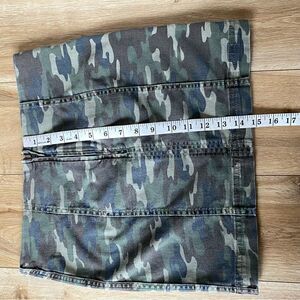 Picturing a womens green camo zippered mini skirt with heavy seams as boning by Free People in a size 4.