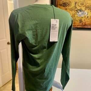 Freeset is a brand from India that empowers women trapped in the sex trade. The shirt is green and has the Rise logo in grey on the front. It's a size small, but is meant to be loose and baggy.