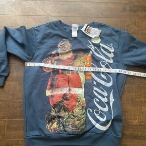 Stay cozy with this Coca Cola sweater featuring a festive Santa design. Perfect for adding a touch of holiday spirit to your wardrobe.