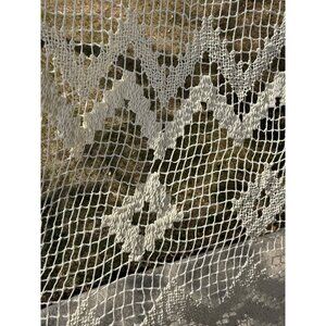 French Antique Ecru Filet Net Panels with Hand Knotted Fringing / Unique 1920s F