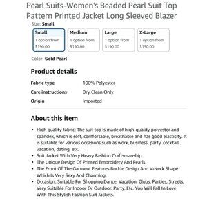 Beautiful faux pearls and pattern work, make this a stand-out blazer jacket that can be worn alone or with desired under shirt/top