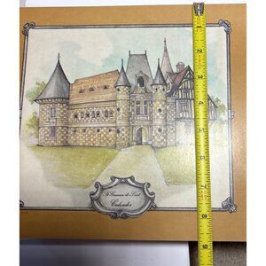 This set of two vintage hardboard placemats features beautifully illustrated French chateaus. With a durable surface, they're ideal for elevating your dining experience while protecting your table. Perfect for adding a touch of elegance to your meals.