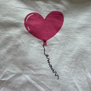 Size: Medium.100% cotton. Short sleeves. Heart-shaped balloon decal with "Amour" written on string.