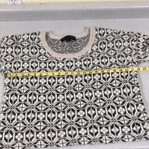 Absolutely gorgeous short sleeve sweater! Cream with bronze metallic threads throughout. Cozy and soft angora, slight crop style. Size medium, but roomy, see pics for measurements.
