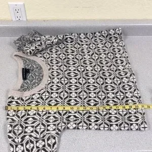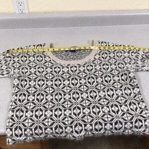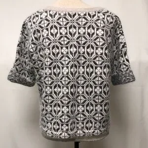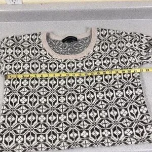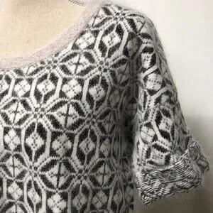 Absolutely gorgeous short sleeve sweater! Cream with bronze metallic threads throughout. Cozy and soft angora, slight crop style. Size medium, but roomy, see pics for measurements.