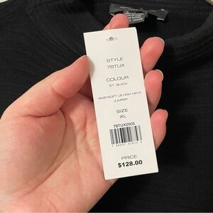 French Connection Babysoft High Neck Jumper Mock Neck Sweater Black Size XL NWT. Super soft ribbed knit. High mock neck. Brand new with tags, retails for $128.