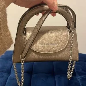 Cute champagne color purse. Inner pocket zipper. Lightly used. Chain and strap detailing. Purchased from Winners. Perfect condition.