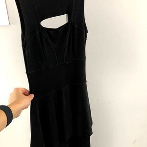 Cute cut out in the front and back. Skinny fit under layer and flare out detail. Some wear and tear unde the armpits. Size 4 but fits small.