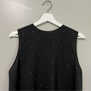 French Connection Black Sleeveless Sheer Front Rhinestone Blouse
