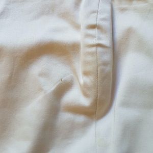 There are 2 see specs on the ivory part and one spec in the green part (please see last photos). They're not very noticeable, but will likely come off with cleaning. The tag indicates it should be dry cleaned.