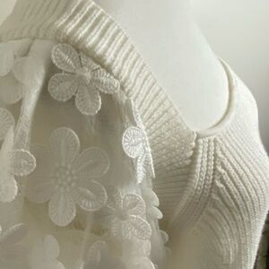 French Connection Cotton Embroidered Flower Puffy Sleeve Sweater. Sz- L