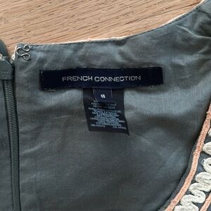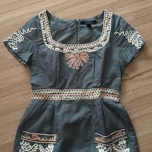 French Connection - Beautiful gray dress featuring intricate lime yellow and pink embroidery. Perfect for casual outings or special occasions.