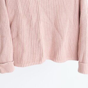 French Connection pink knit boatneck sweater (size S) with cuffed sleeves. Can also be worn off the shoulder.
