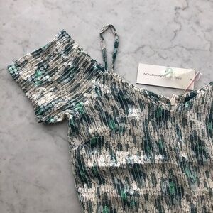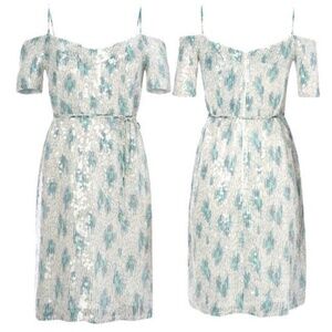 French Connection Off-Shoulder Boho Sequin Dress 0
