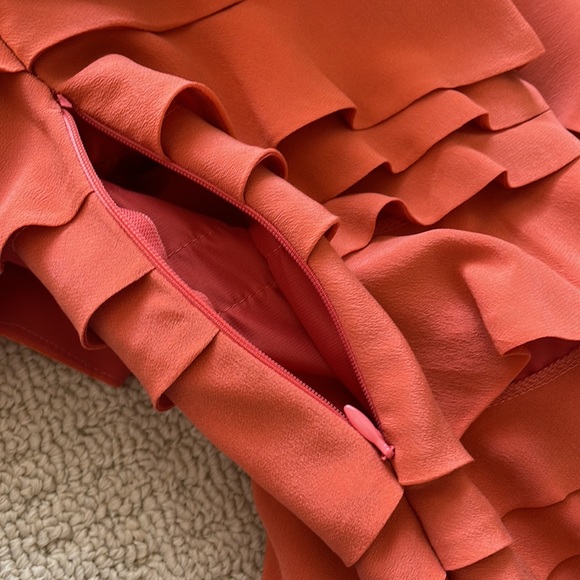 French Connection Silk Ruffle Dress in Orange
