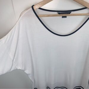 French Connection White Navy Blue Dolman 3/4 Sleeve Stretch Top Women's sz M